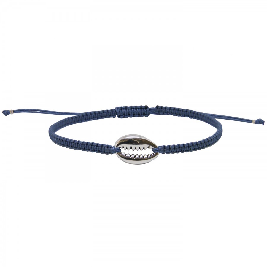 Bracelet grigri homme en macramé océan orné d'une coquille bonheur plaqué argent, pour les amoureux de l'océan et de ses trésors.