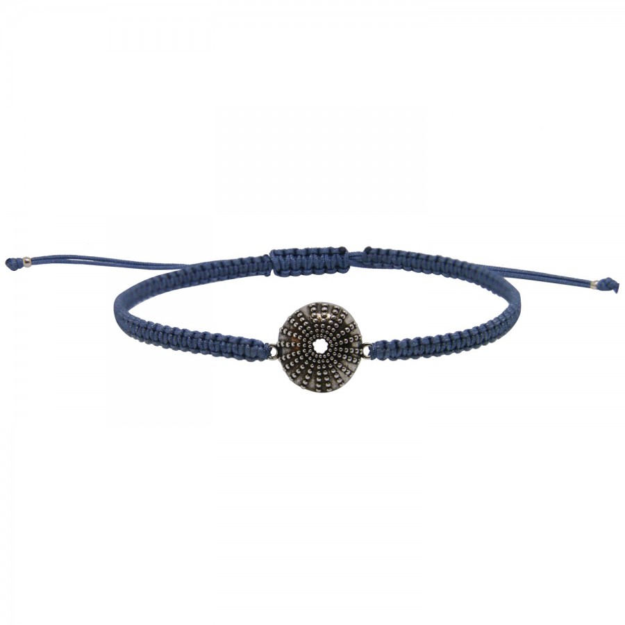 Bracelet grigri homme en macramé océan orné d'un petit oursin plaqué argent, pour les passionnés de la plage et de ses trésors.