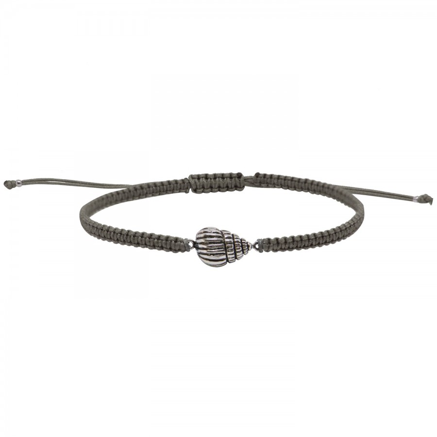 Bracelet grigri homme en macramé sable orné d'un coquillage Triton plaqué argent, pour les amoureux de l'océan et des ses trésors.
