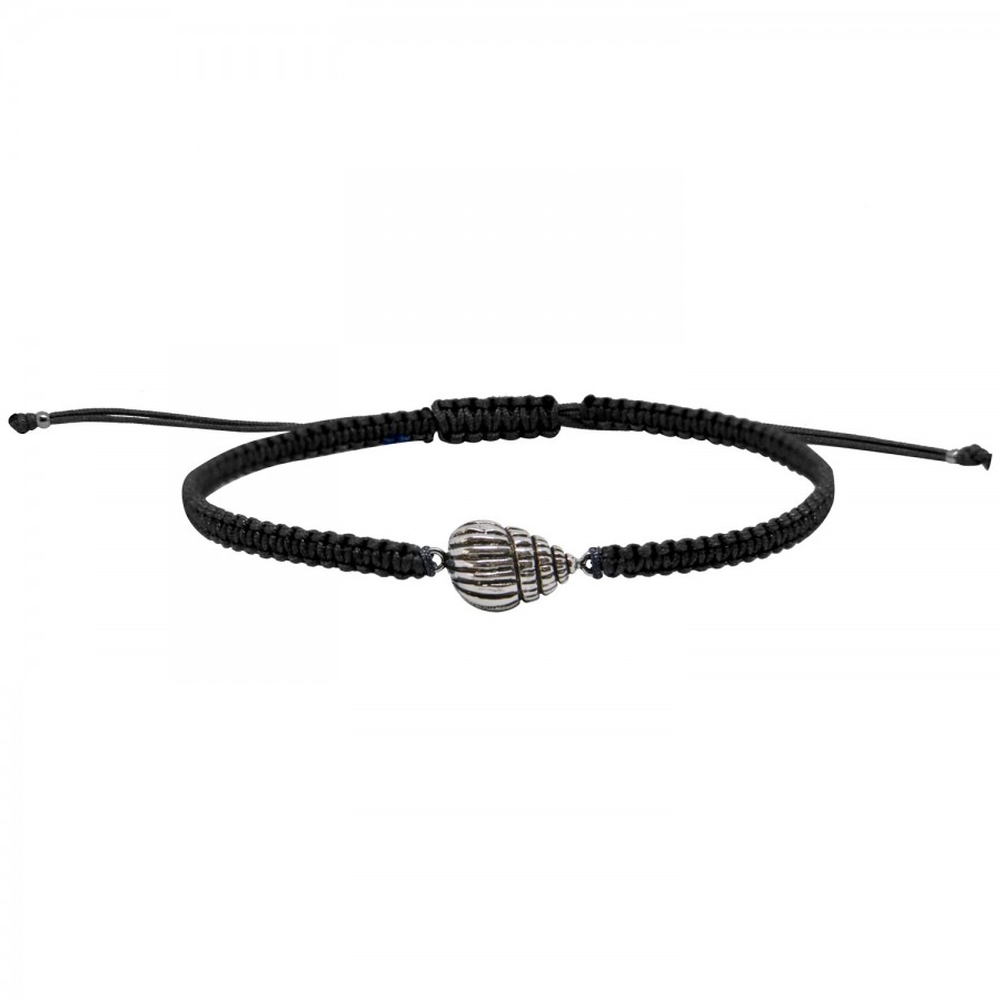 Bracelet grigri homme en macramé noir orné d'un coquillage Triton plaqué argent, pour les amoureux de l'océan et de ses trésors.