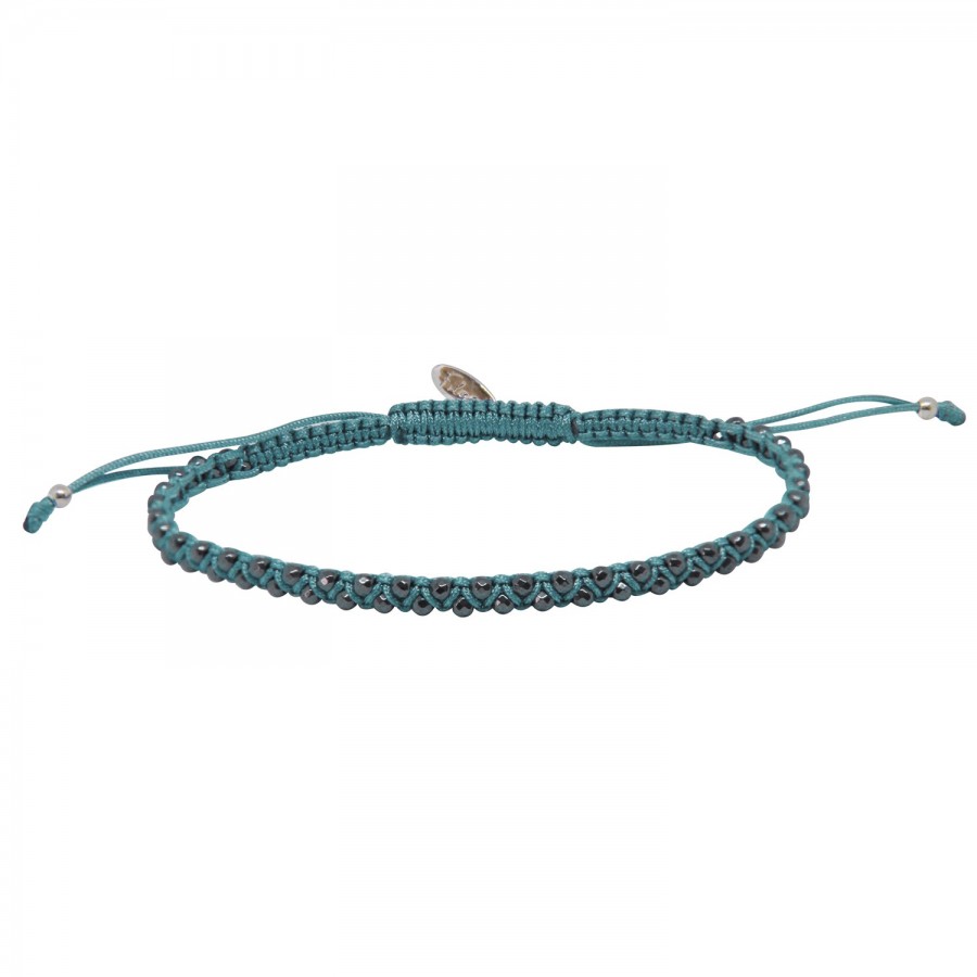 Bracelet grigri homme Lagon macramé Tresse avec des perles d'hématite plaqué argent.