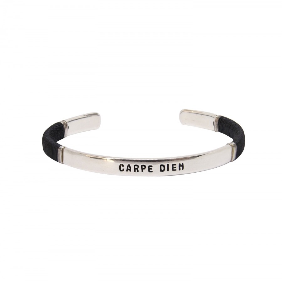 Jonc homme Carpe diem noir plaqué argent. Message posItif à offrir ou à s'offrir.