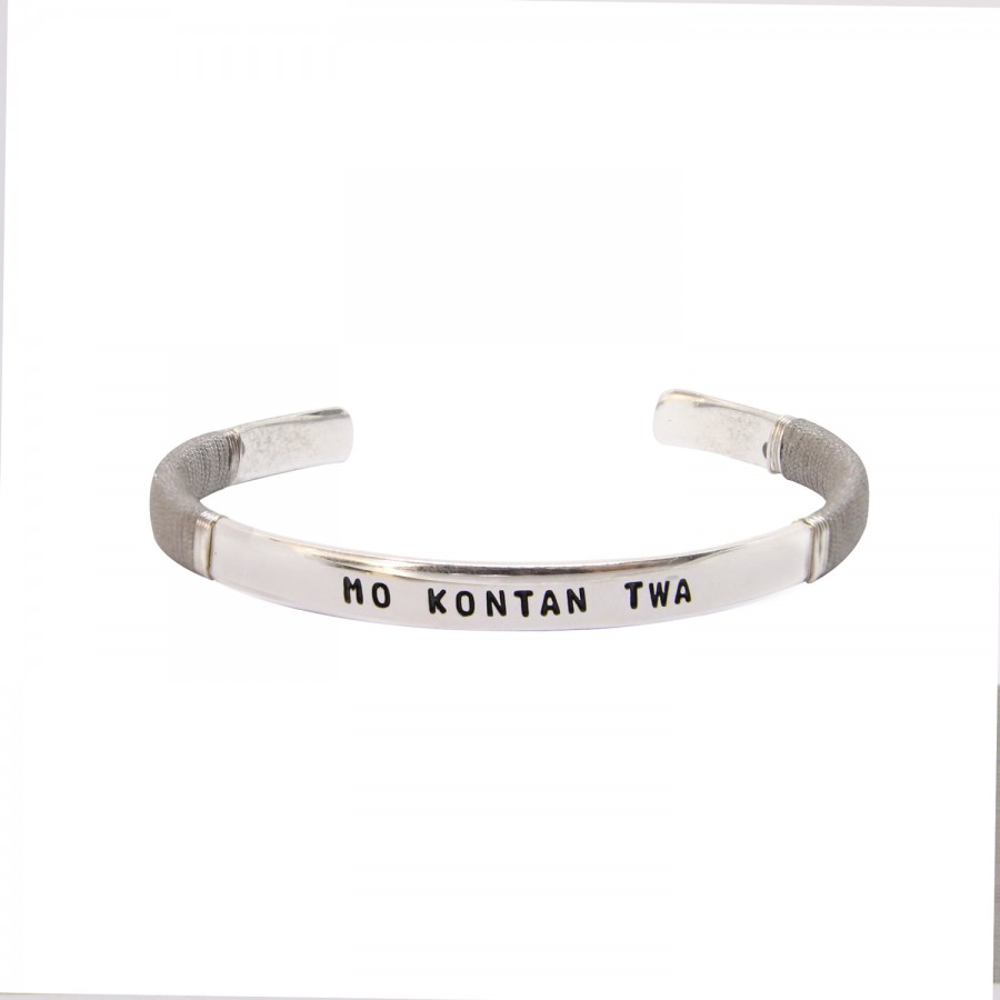 JONC HOMME MO KONTAN TWA SABLE PLAQUE ARGENT