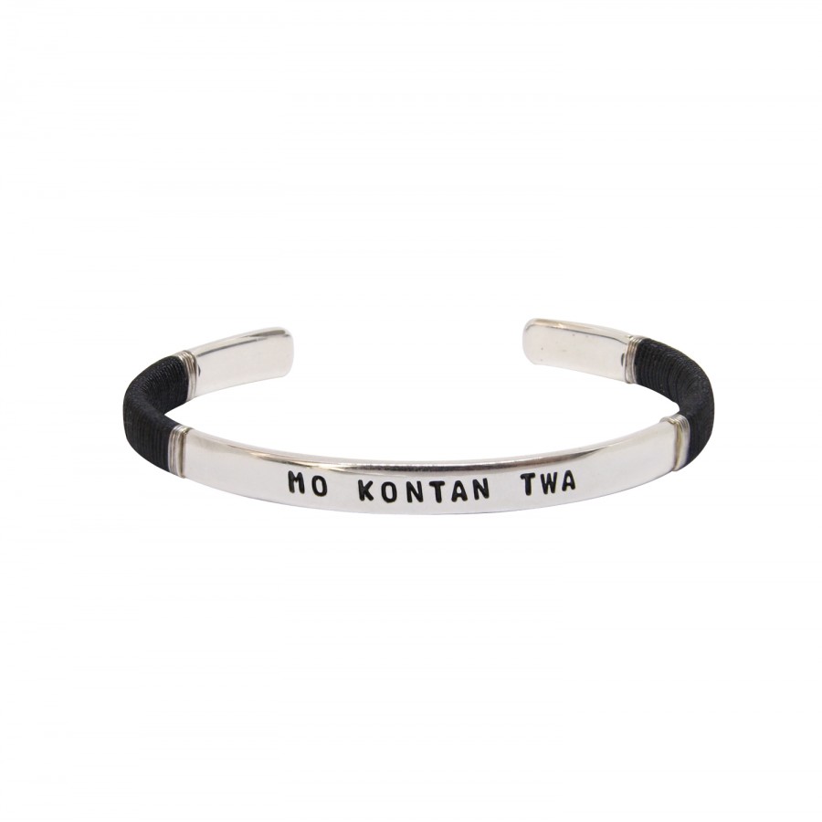 JONC HOMME MO KONTAN TWA NOIR PLAQUE ARGENT