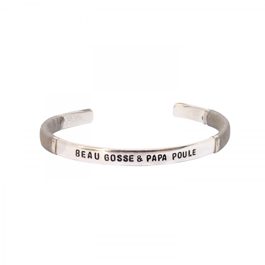 Jonc homme Beau gosse et Papa poule sable plaqué argent. Message posItif à offrir ou à s'offrir.