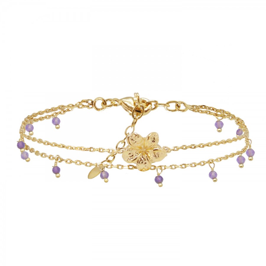 BRACELET DOUBLE FRANGIPANE AMETHYSTE DORE OR FIN 24K