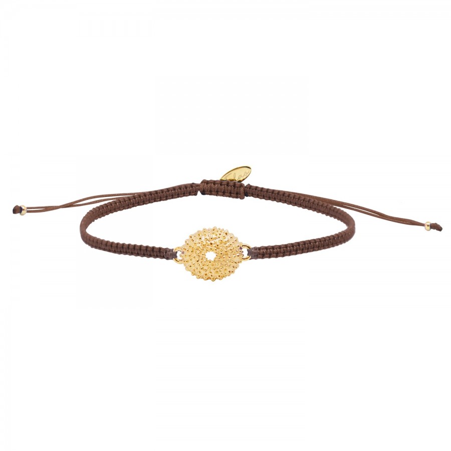Véritable trésor de l'Océan Indien, vous craquerez pour le petit oursin de ce bracelet grigri en macramé moka doré à l'or fin 24 carats inspiré de l'ile maurice.