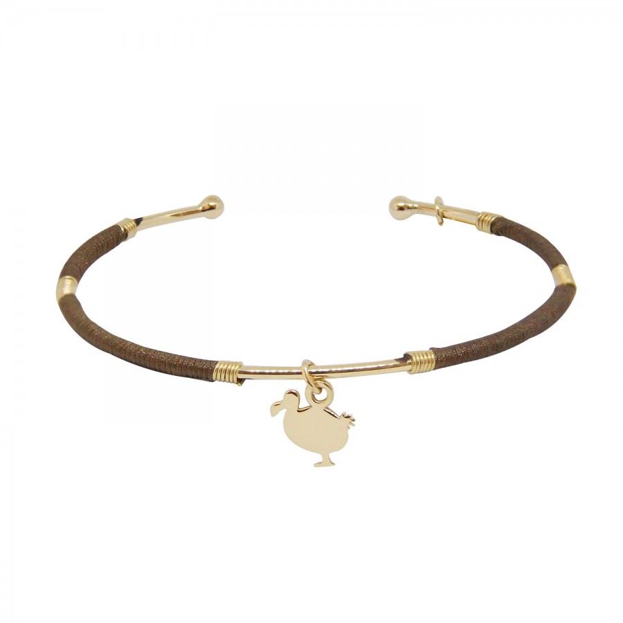 Le jonc Little Dodo moka doré à l'or fin 24 carats, au design fin et délicat est une invitation à célébrer cet oiseau emblématique de Maurice.
