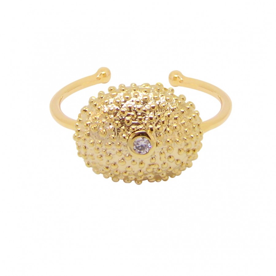 Véritable trésor de l'Océan Indien, craquez pour le petit oursin orné d'un zirconium de cette jolie bague dorée à l'or fin 24 carats inspirée de l'ile maurice.