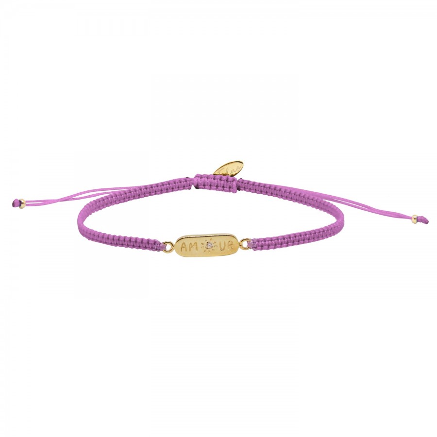 Orne?e dun lumineux zirconium, tel une petite e?toile scintillante, un petit soleil rayonnant, le grigri Amour lilas doré à l'or fin 24 carats, ce?le?bre de?licatement lAmour et la Lumie?re.