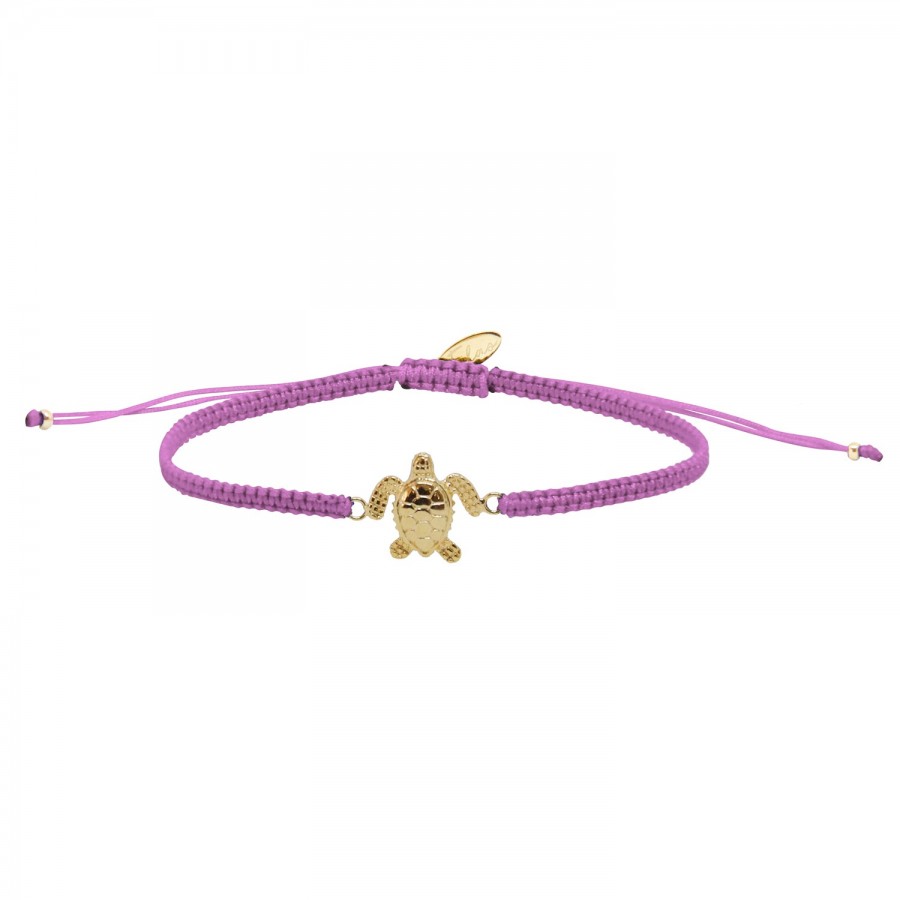 La tortue de mer et son environV299nement marin de?licat sont précieux, le bracelet grigri macramé Turtle lilas dore? a? lor fin 24 carats est un engagement pour la préservation de l'Océan et de ses joyaux.
