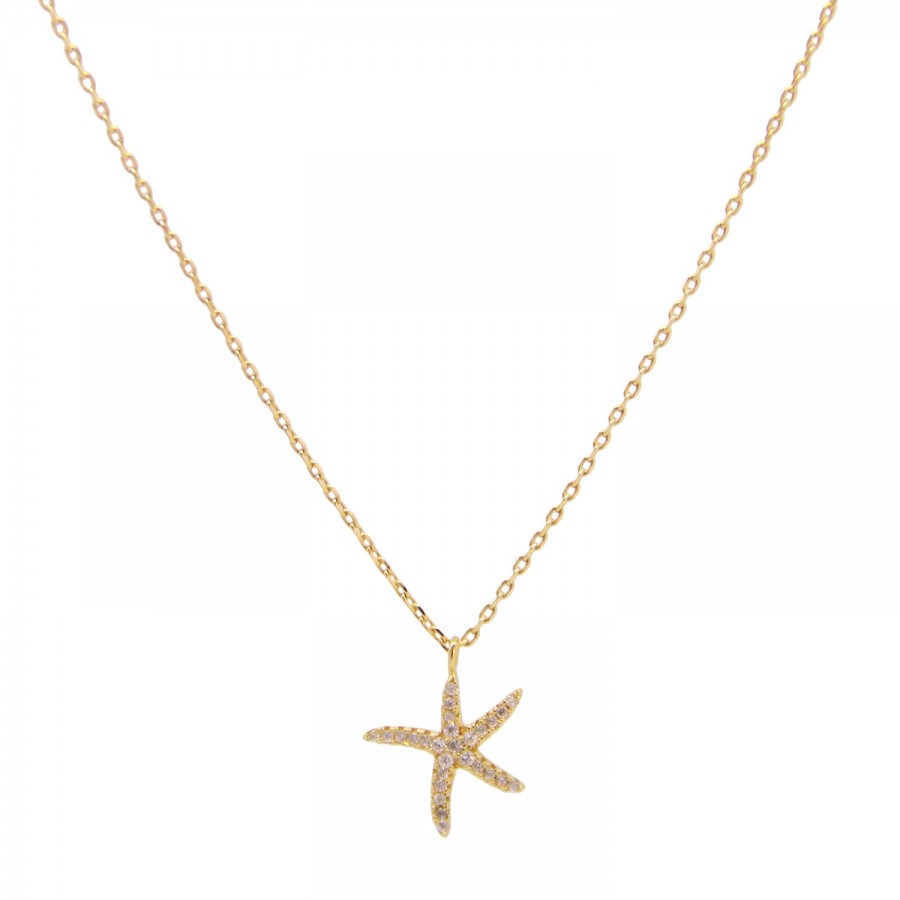 Poétique et délicate, la chaîne Starfish dorée 24 carats et sertie de délicats zirconiumsdiffuse la lumière douce des étoiles de mer sur le cou.