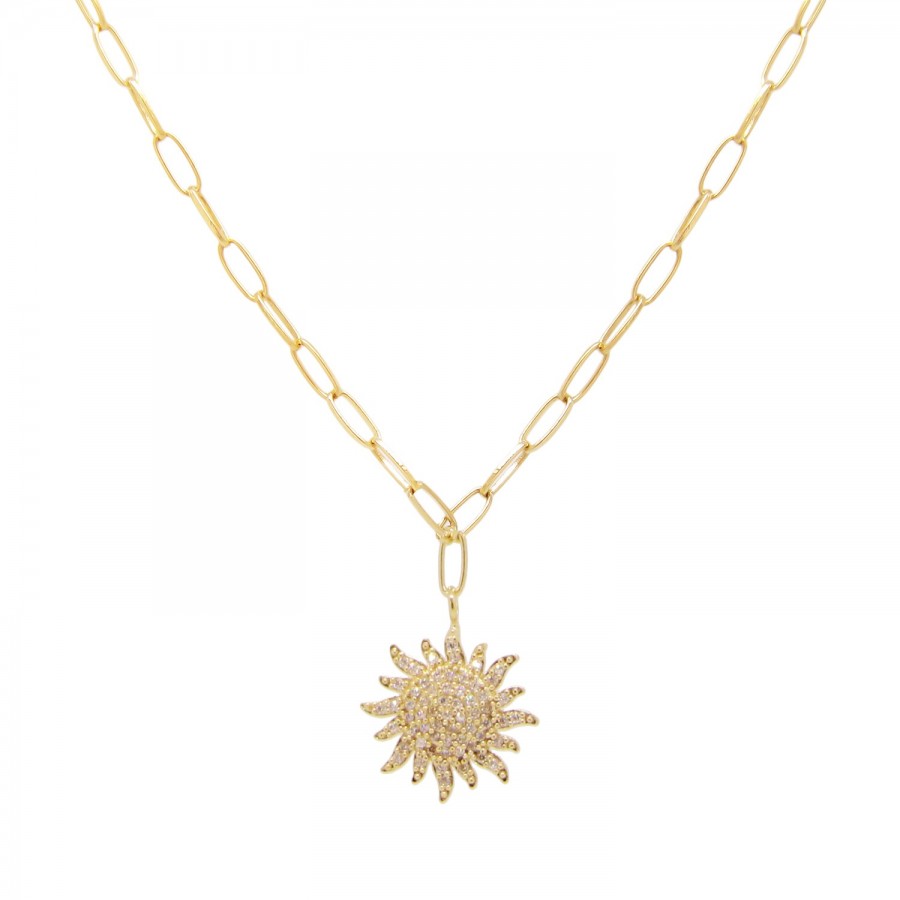 CHAINE BIG SUN STRASS 45CM DORE OR FIN 24K