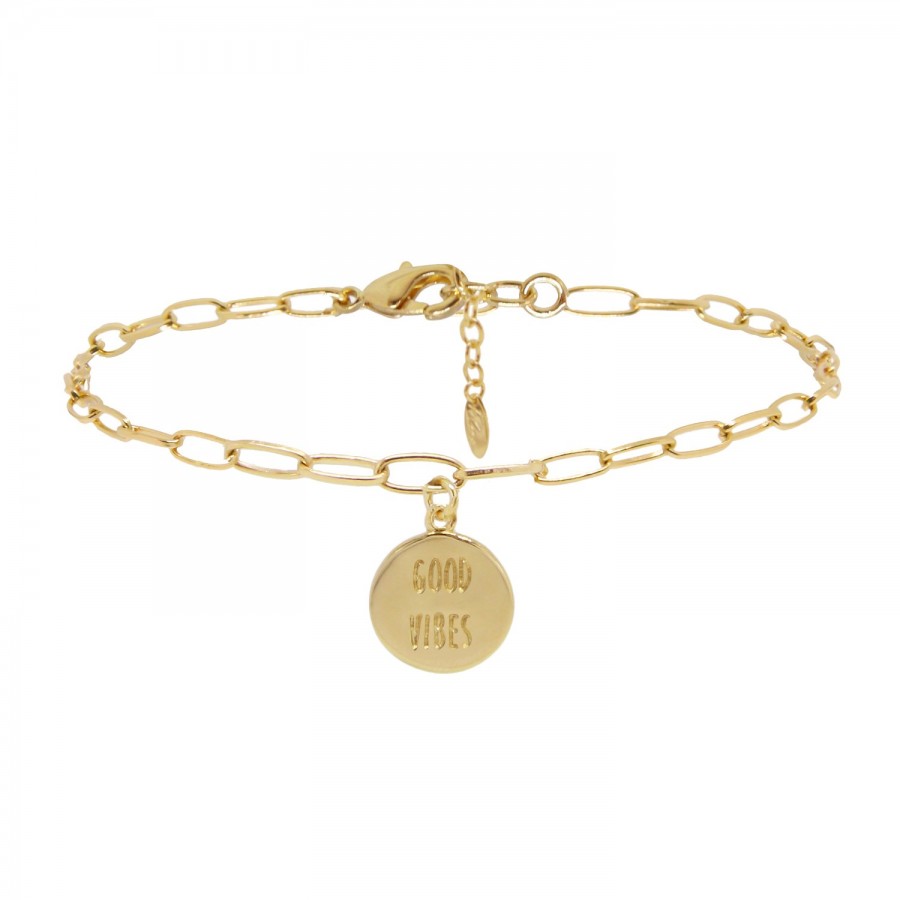 BRACELET MEDAILLE GOOD VIBES DORE OR FIN 24K