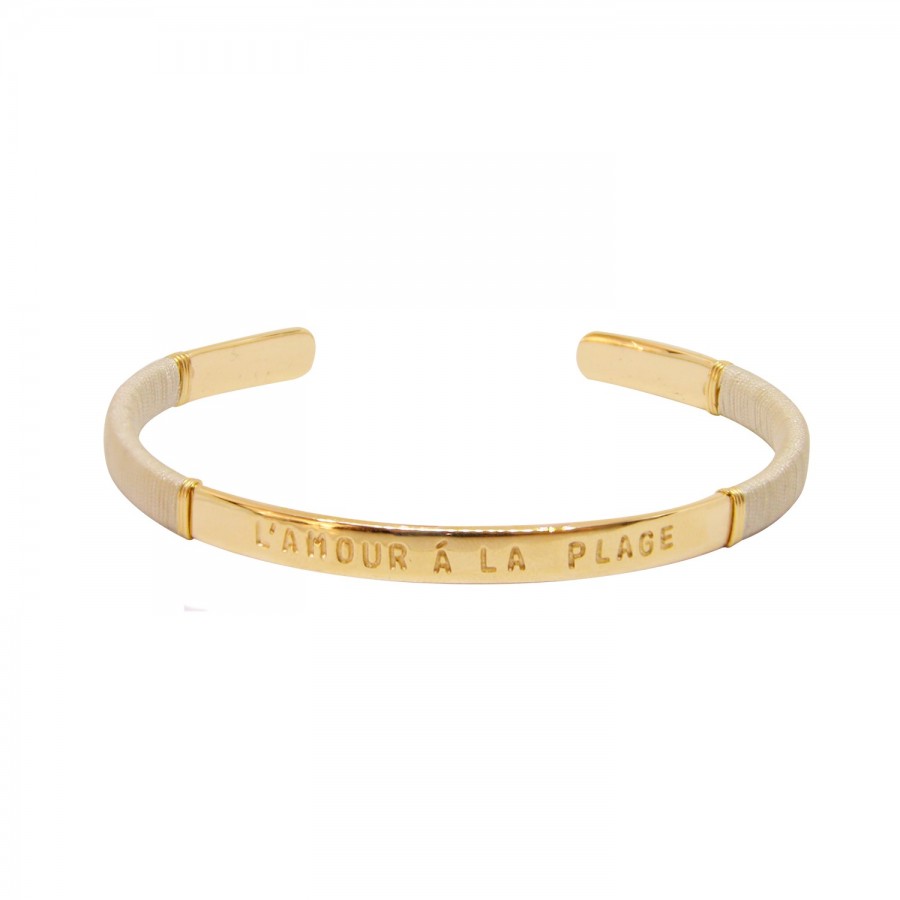 Délicat et solaire, le jonc LAmour à la Plage Champagne doré à l'or fin 24 carats évoque la douceur dun rayon de soleil sur le sable.