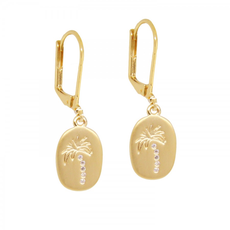 Solaire et poétiques, les dormeuses Palm dorées à l'or 24 carats et serties de délicats zirconiums diffusent une lumière subtile autour du visage.