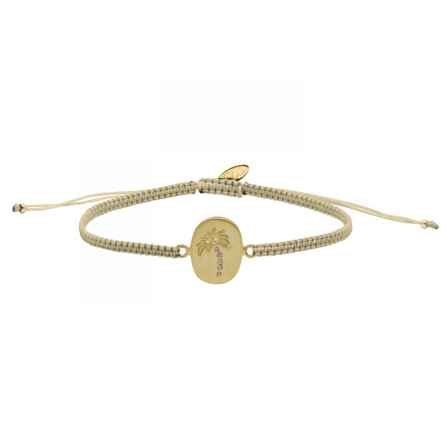 Raffiné et solaire, le grigri Palm Champagne doré à l'or 24 carats et serti de délicats zirconiums habille le poignet dune lumière solaire.