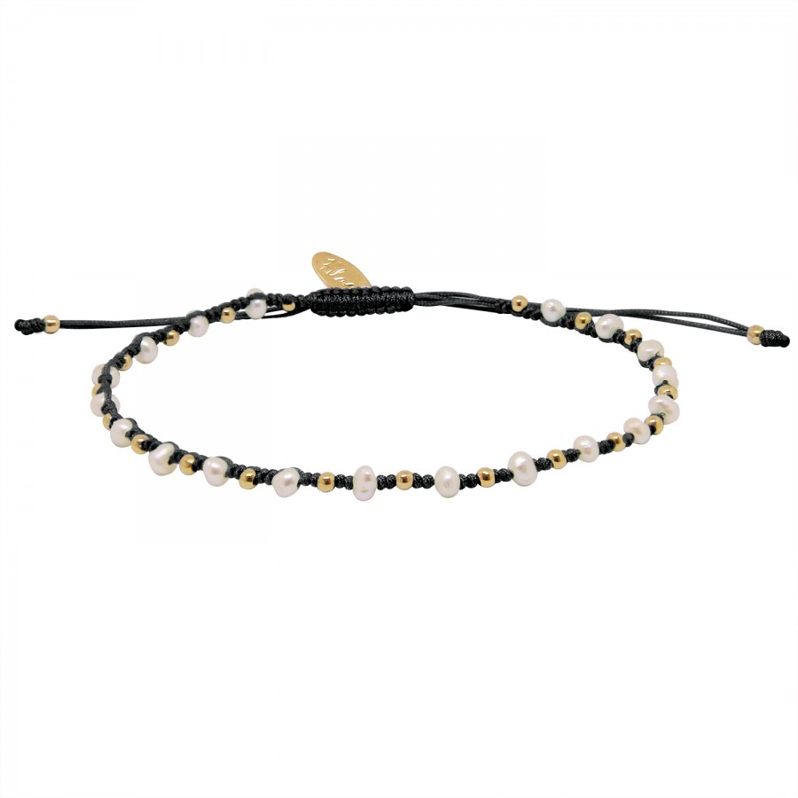 Raffiné et solaire, le grigri Aqua Pearls Noir doré à l'or 24 carats illumine le poignet avec élégance.