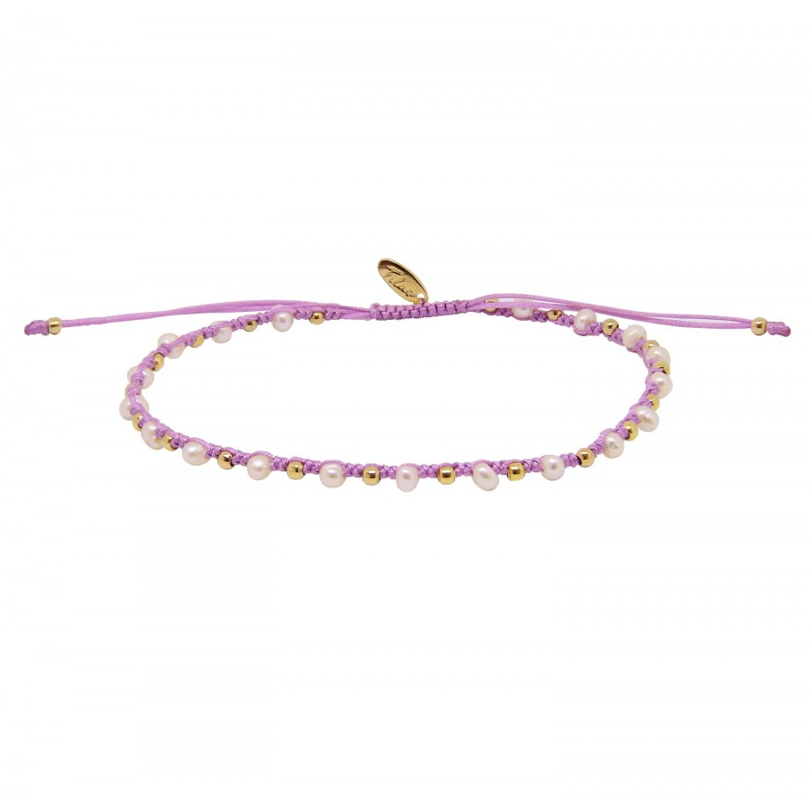 Le grigri Aqua Pearls Lilas doré à lor fin 24 carats et orné de veritables perles d'eau sinspire des ciels lilas sur les plages tropicales et des perles délicates. Bijou raffiné et poétique, il illumine le poignet avec élégance et légèreté.