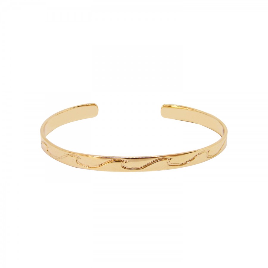 Le jonc Wave doré à lor fin 24 carats sinspire des ondulations de la mer et du rythme des vagues. Bijou raffiné et poétique, il est le bijou des passionnées de l'ocean et des surfeuses.