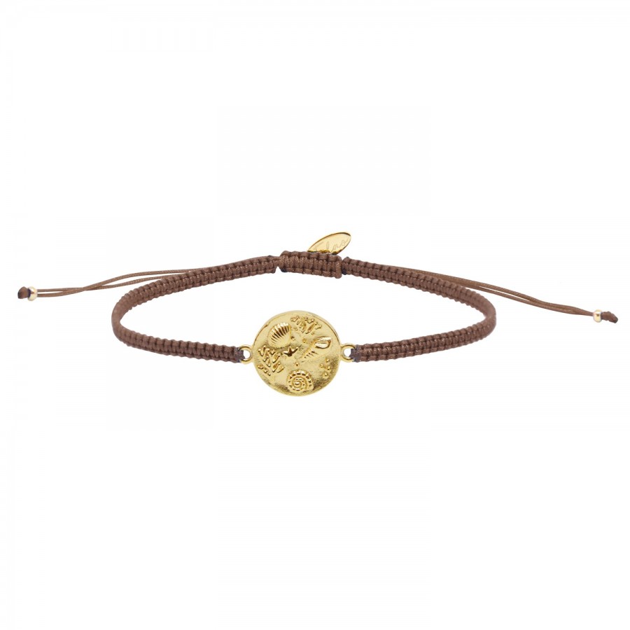 Le grigri Little Sea Moka doré à lor fin 24 carats sinspire des nuances profondes et chaleureuses du moka et des reflets marins. Bijou raffiné et poétique, il illumine le poignet avec élégance, parée dune pierre Zirco scintillante.