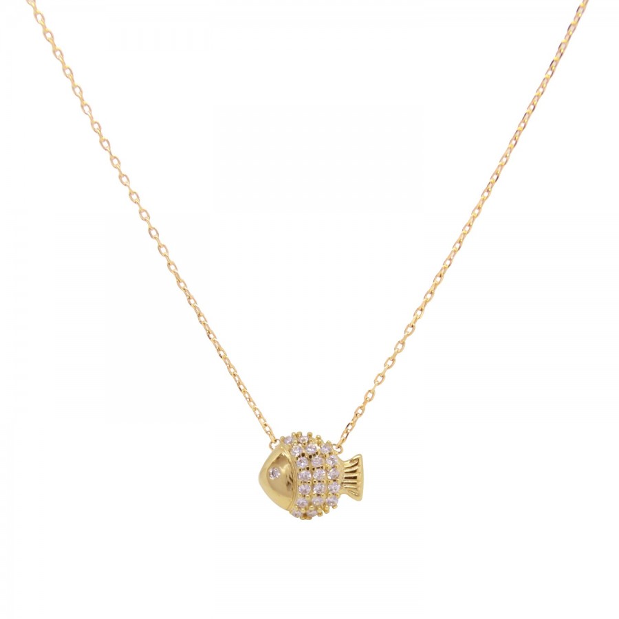 CHAINE LITTLE FISH ZIRCO DORE OR FIN 24K