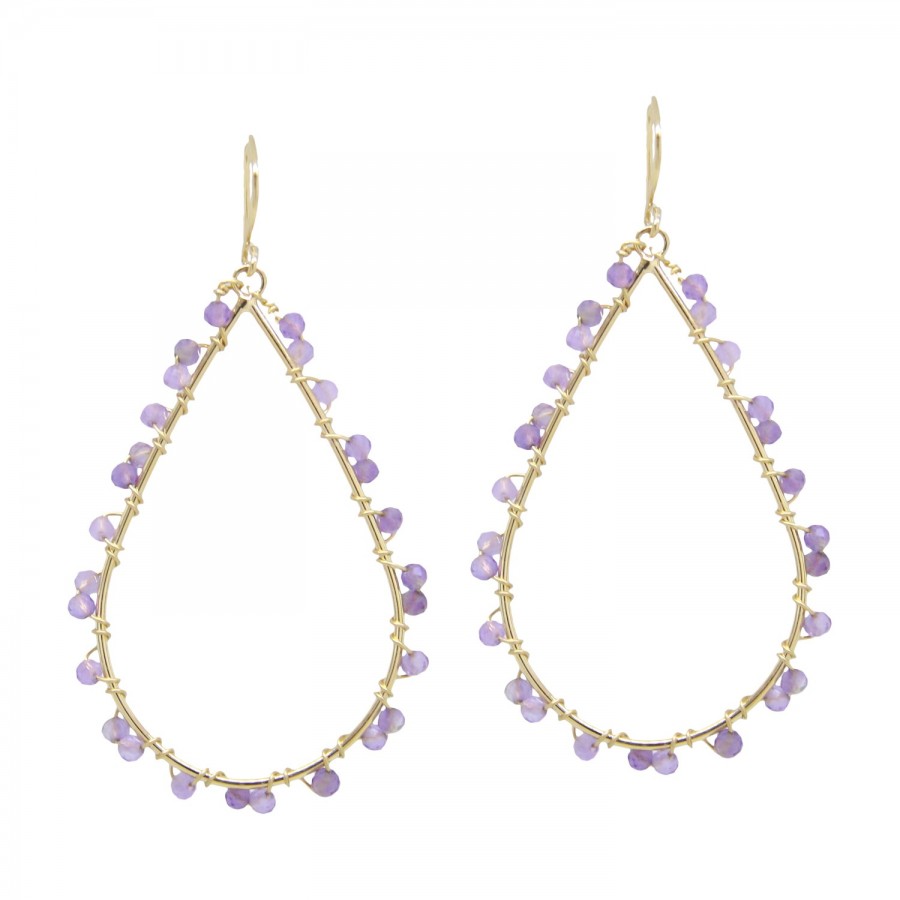 BOUCLES GOUTTES AMETHYSTE DORE OR FIN 24K