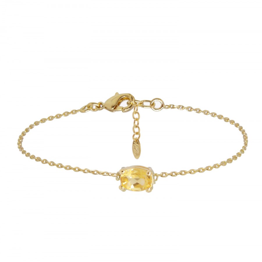 Le bracelet Citrine doré à l'or fin 24 carats est orné d'une délicate pierre semi-précieuse aux nuances ensoleillées et transparentes. Bijou poétique et lumineux, il illumine le poignet avec élégance.