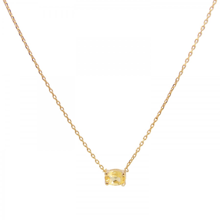 La chaine Citrine dorée à l'or fin 24 carats est ornée d'une délicate pierre semi-précieuse aux nuances ensoleillées et transparentes. Bijou poétique et lumineux, elle illumine le visage avec élégance.