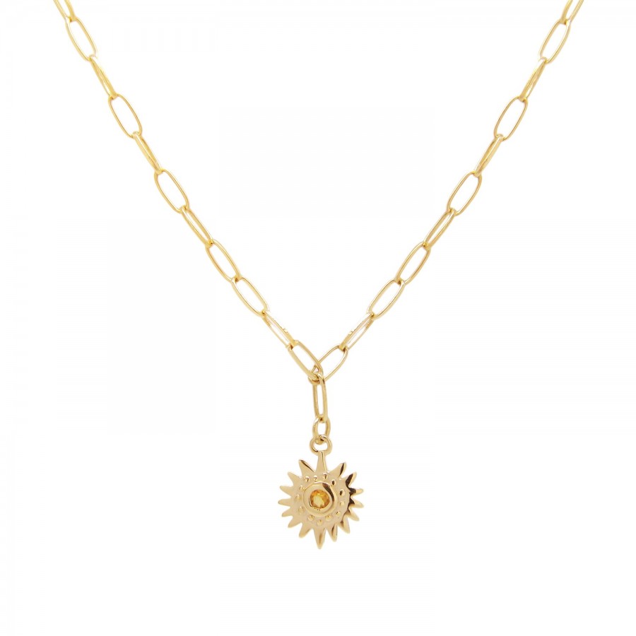 La chaîne Zenith Citrine dorée à lor fin 24 carats sinspire des reflets dorés de la Citrine. Bijou poétique et raffiné, elle illumine avec douceur et élégance.
