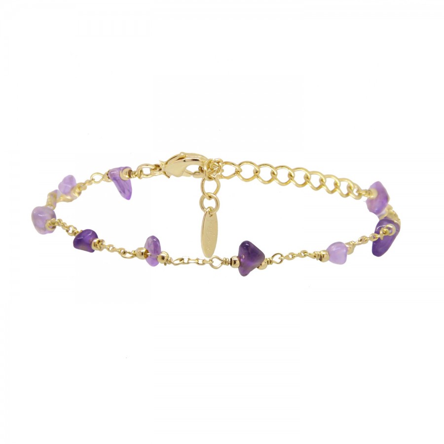 Raffiné et poétique, le bracelet Pépite Améthyste doré à l'or fin 24 carats diffuse un éclat violet subtil.