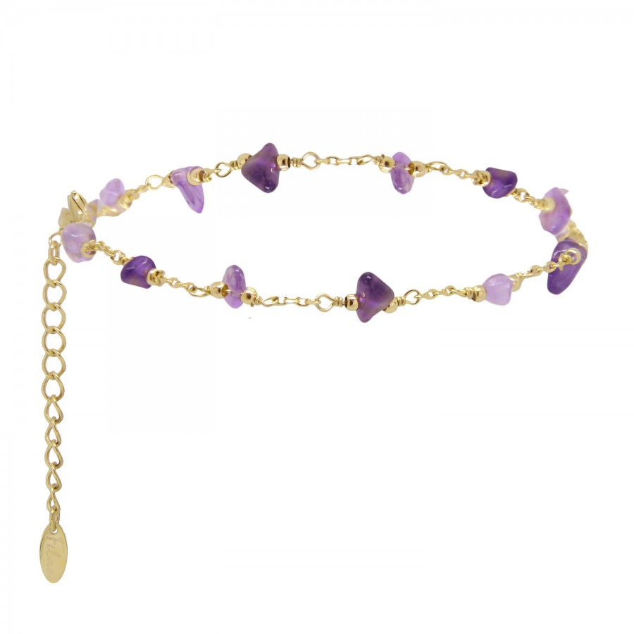 Raffinée et poétique, la chaîne de pied Pépite Améthyste dorée à l'or fin 24 carats diffuse un éclat violet subtil.